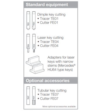 Mașina este echipată cu un palpator cu arc, acționat de un inel de reglare pentru calibrare perfecta. Acest lucru asigură calitatea și precizia tăierilor, chiar și atunci când cheile originale sunt uzate.